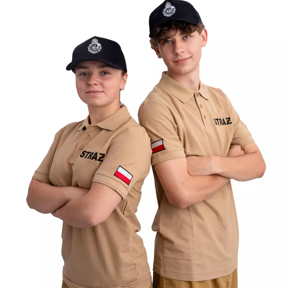 Piaskowa koszulka polo STRAŻ – wygoda, trwałość i profesjonalny wygląd w służbie